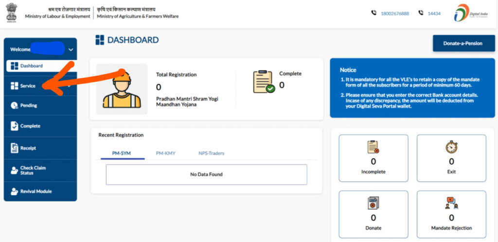 जिसमें आपको प्रधानमंत्री श्रम योगी मानधन योजना के ऑप्शन पर क्लिक कर देना है।